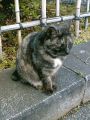 そして「帰りに一枚江ノ島の全景を撮ってかえろう」って思って坂を下っていくと、鳥居を出たところに一匹の猫がいました。